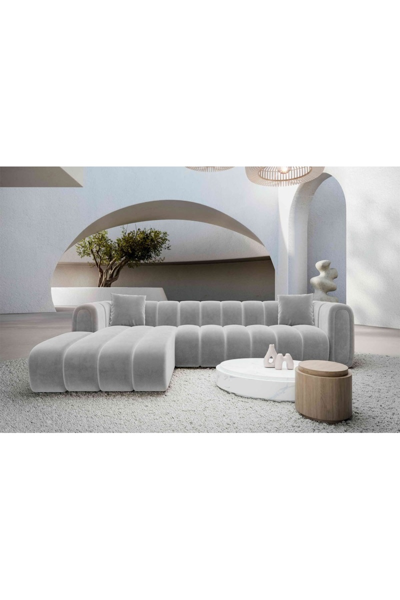Canapé d'angle gauche Luma - Gris clair - 5 places - Tissu toucher velours