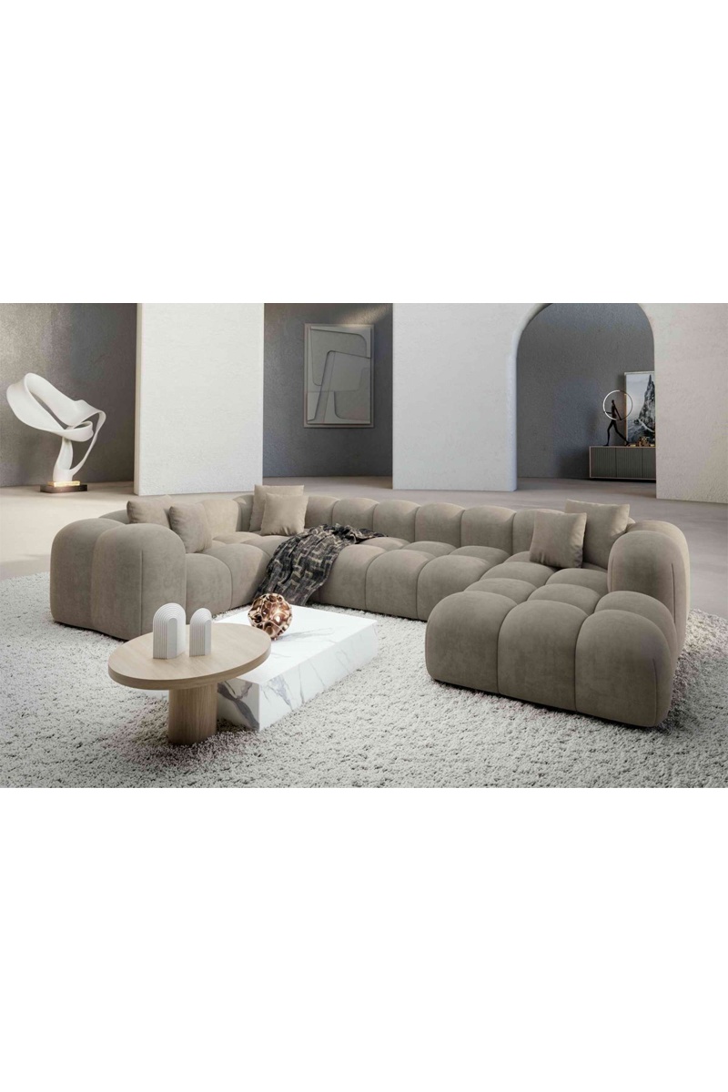 Canapé d'angle gauche panoramique Nuvola - Beige foncé - 7 places - En velours