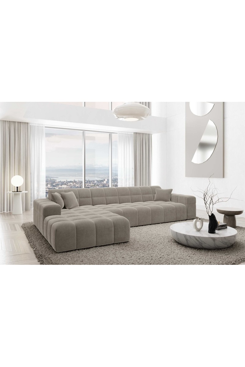 Canapé d'angle gauche Cardano - Beige foncé - 5 places - Tissu toucher velours