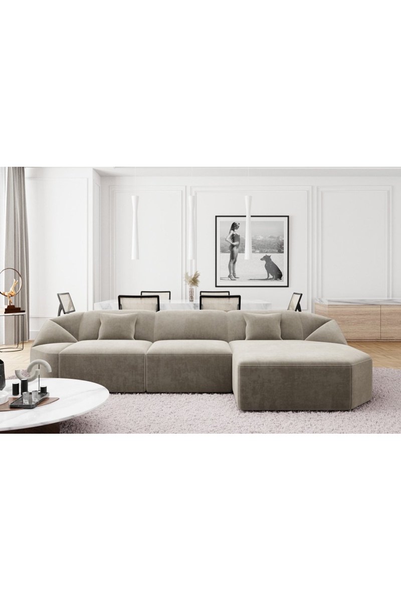 Canapé d'angle droit Laguna - Beige foncé - 5 places - Tissu toucher velours