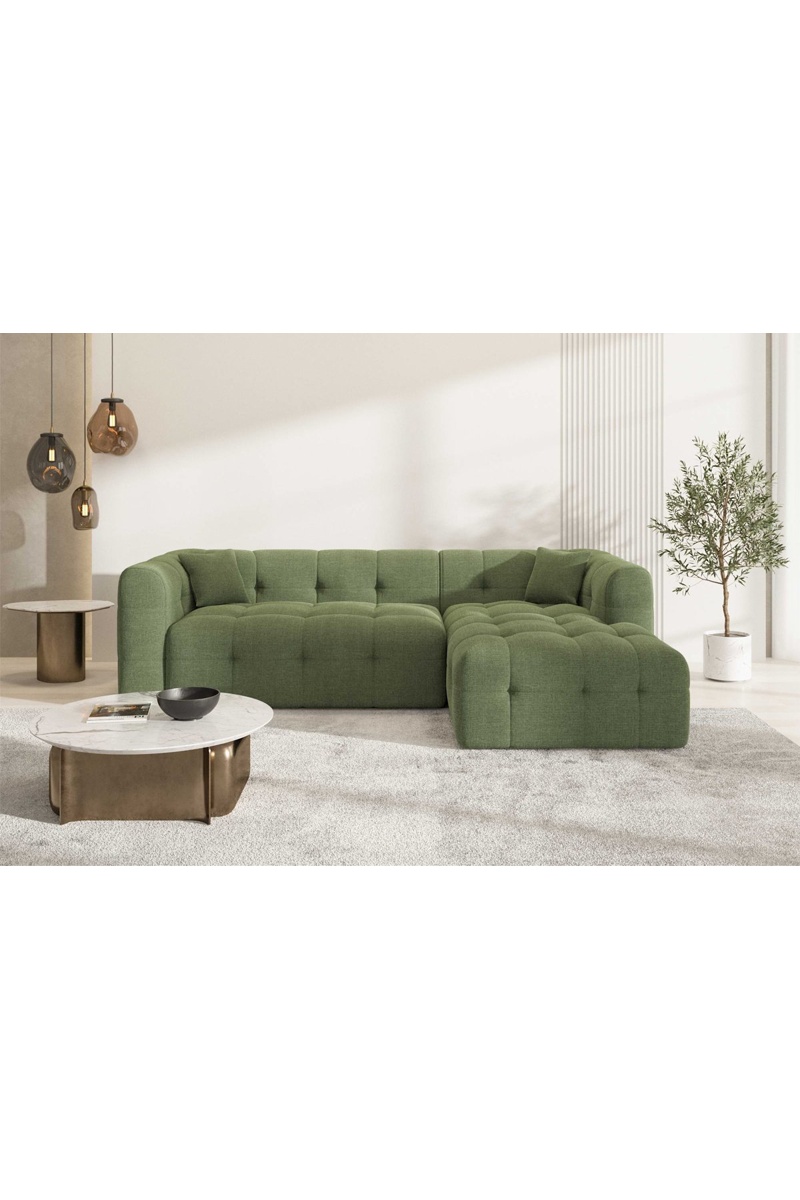 Canapé d'angle droit Baloo - Vert - Tissu structuré - 5 places