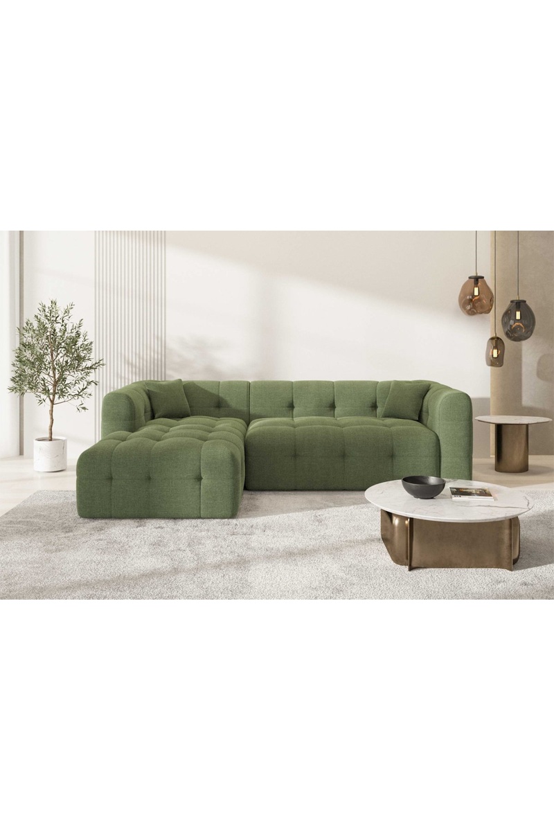 Canapé d'angle gauche Baloo - Vert - Tissu structuré - 5 places