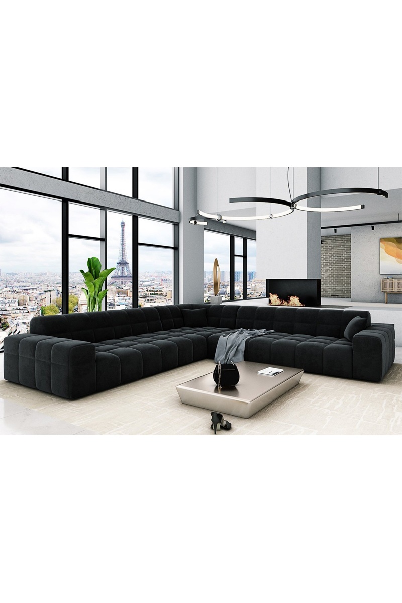 Canapé d’angle Cardano - Noir - 6 places - Toucher velours