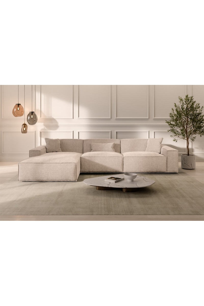 Canapé d'angle gauche Lionel - Beige - 5 places - Tissu structuré