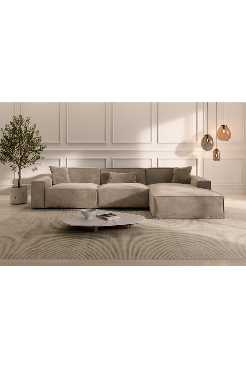 Canapé d'angle droit Lionel - Beige foncé - 5 places - Tissu toucher velours