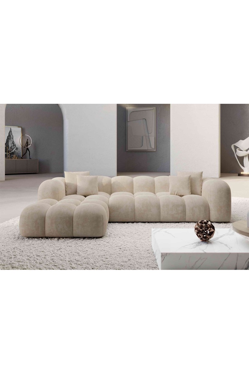 Canapé d'angle gauche Form Nuvola - Crème - 5 places - Tissu toucher velours