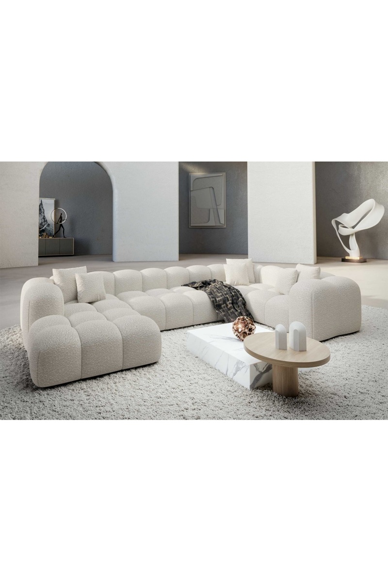 Canapé d'angle droit panoramique Nuvola - Blanc - 7 places - Tissu bouclé