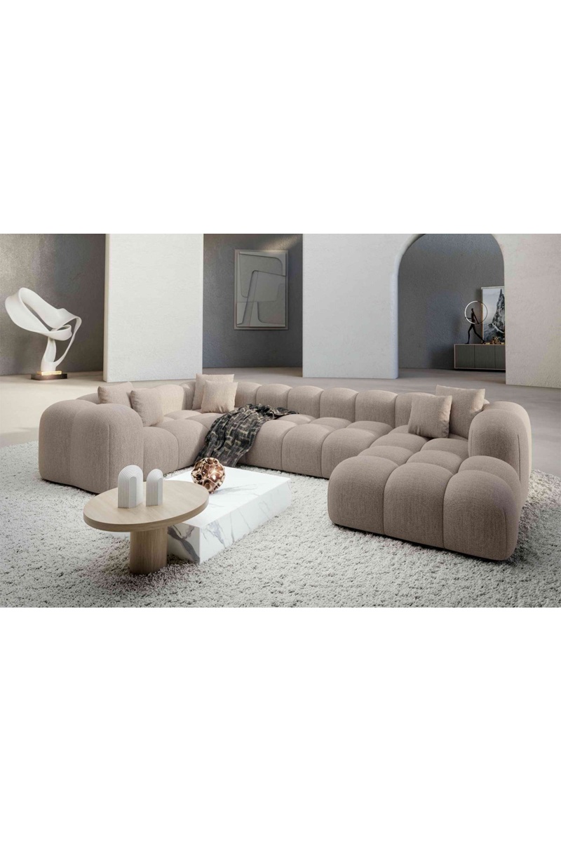 Canapé d'angle gauche panoramique Nuvola - Beige - 7 places - Tissu structurel