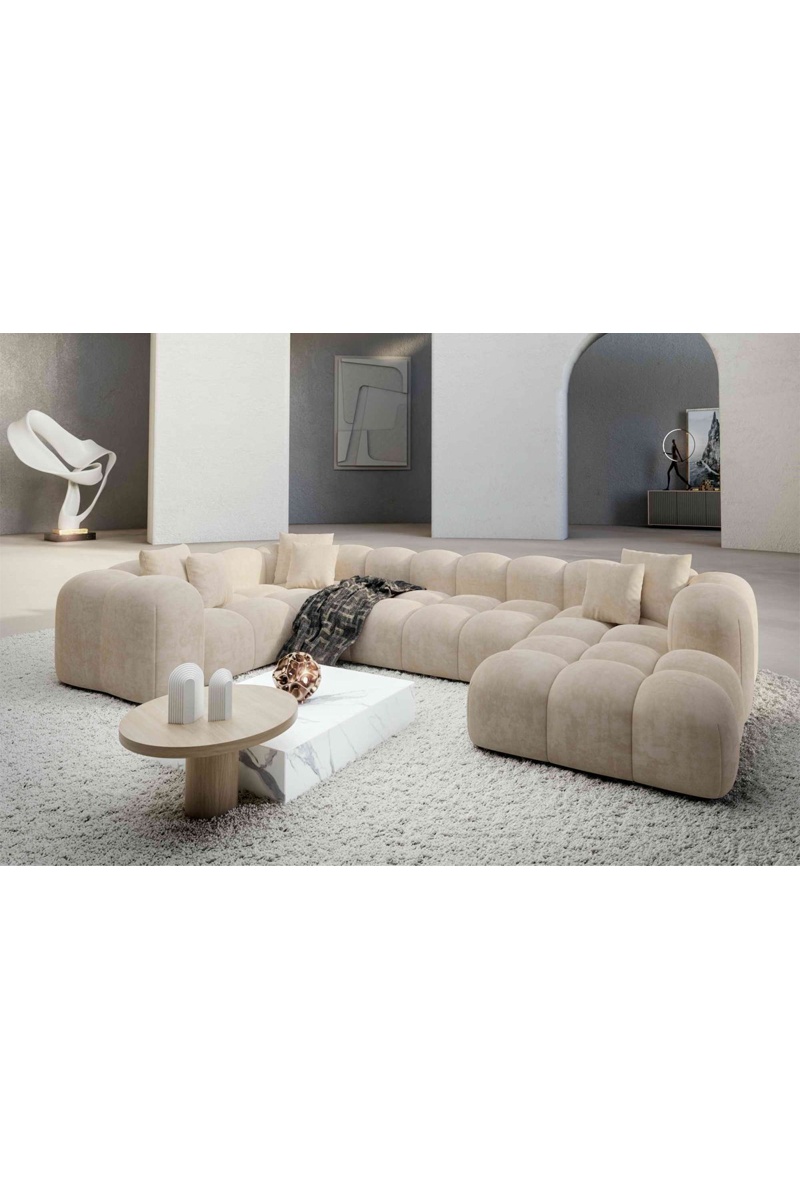 Canapé d'angle gauche panoramique Nuvola - Crème - 7 places - En velours
