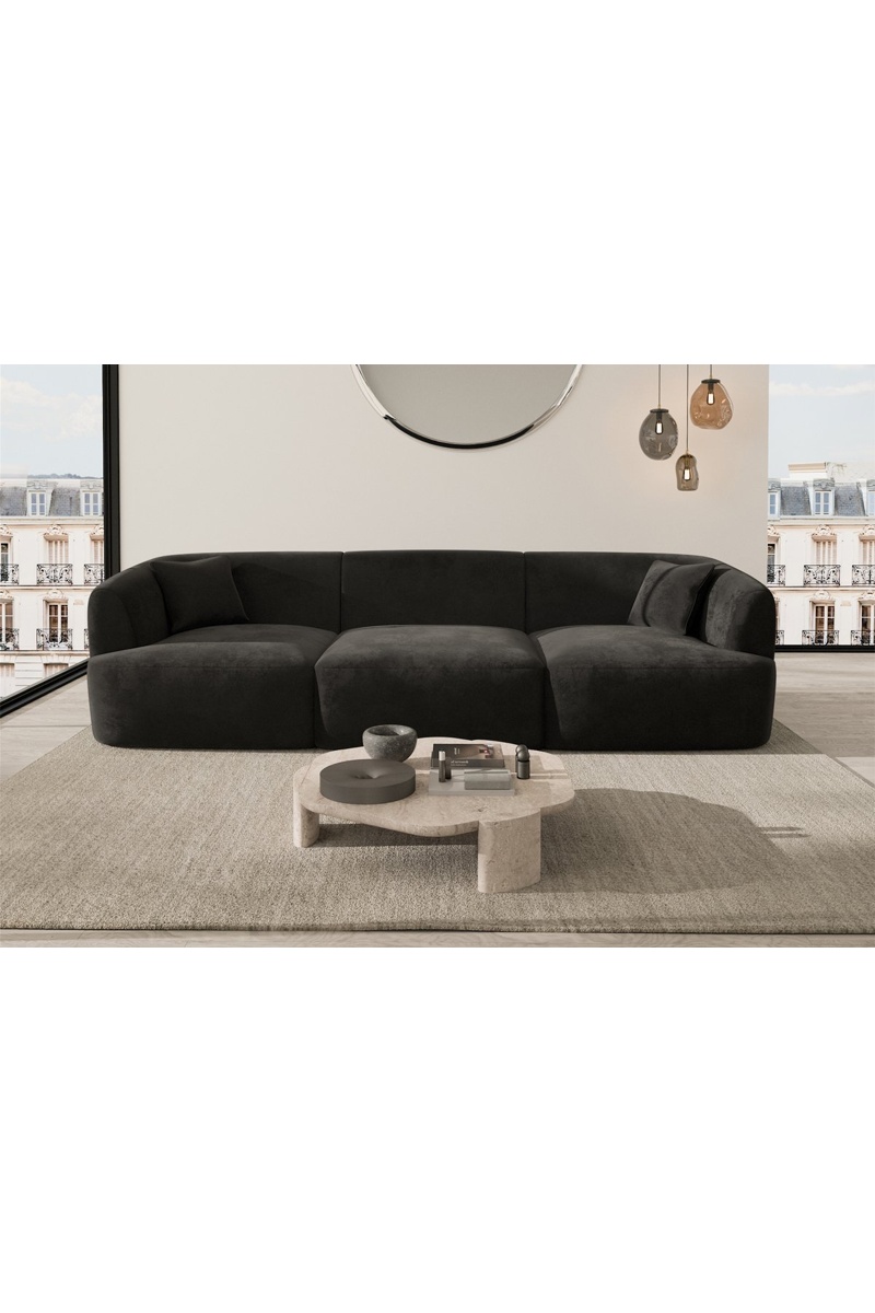 Canapé Ozura - Noir - 3 places - Tissu toucher velours