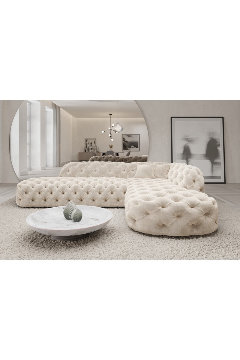 Canapé d'angle droit Honey - Crème - 6 places - Tissu toucher velours