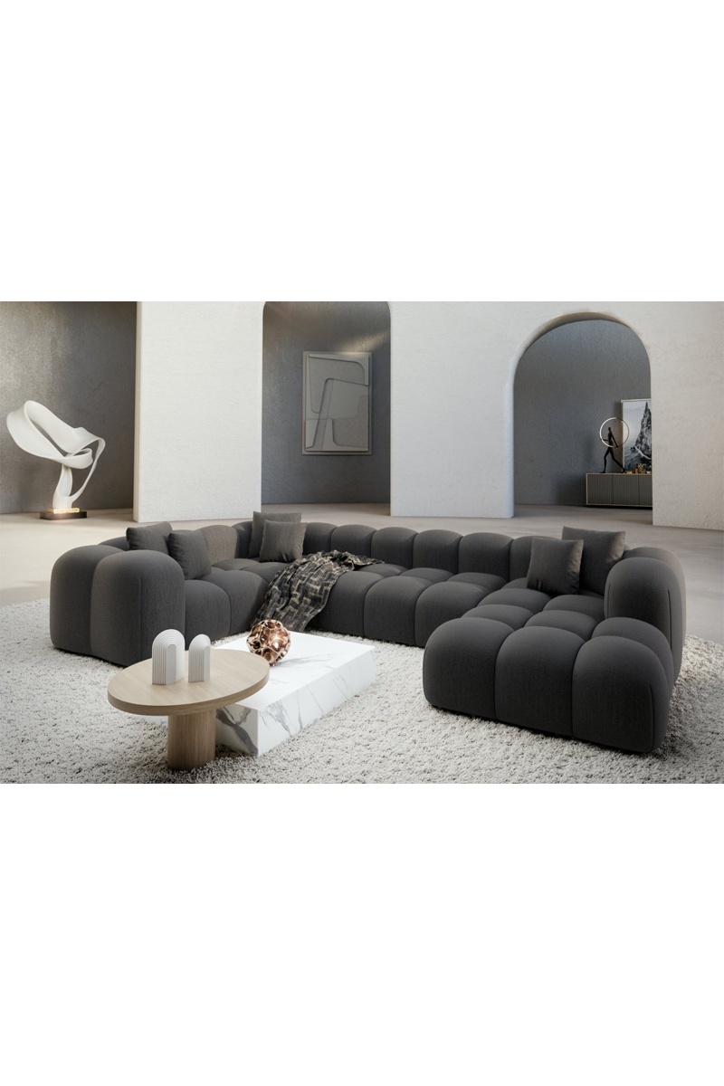 Canapé droit panoramique Nuvola - Anthracite - 7 places - Tissu structurel
