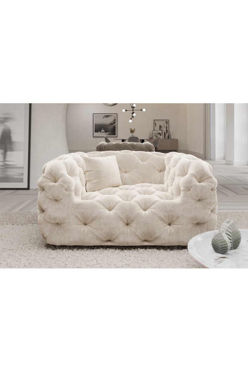 Fauteuil Honey - Crème - Tissu toucher velours