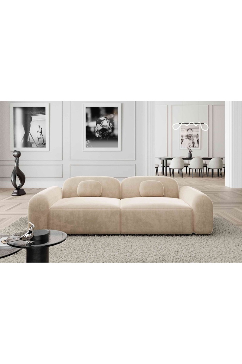 Canapé droit Labucca - Crème - 3 places - Tissu velours