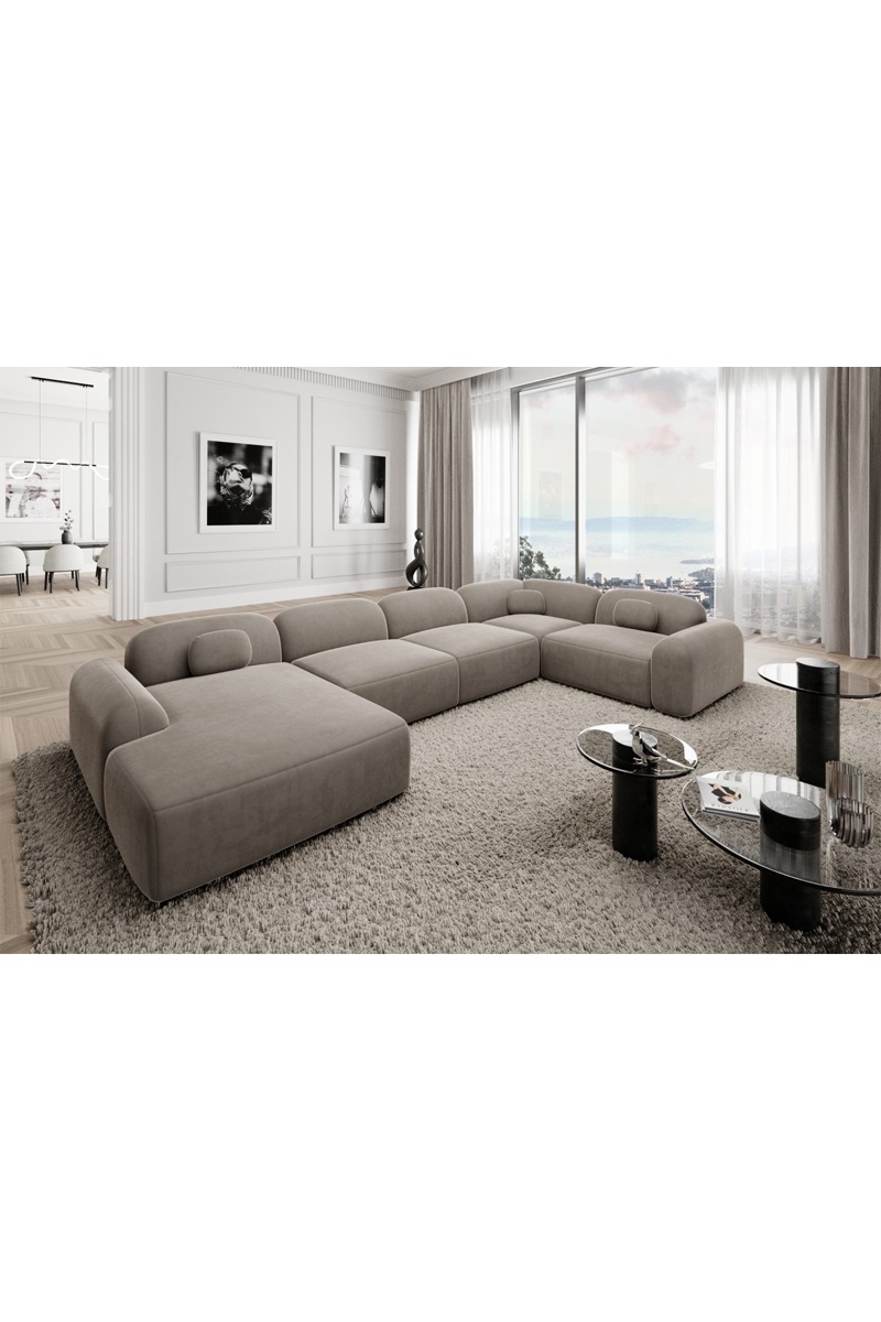Canapé d'angle droit panoramique Labucca - Beige foncé - 7 places - En velours