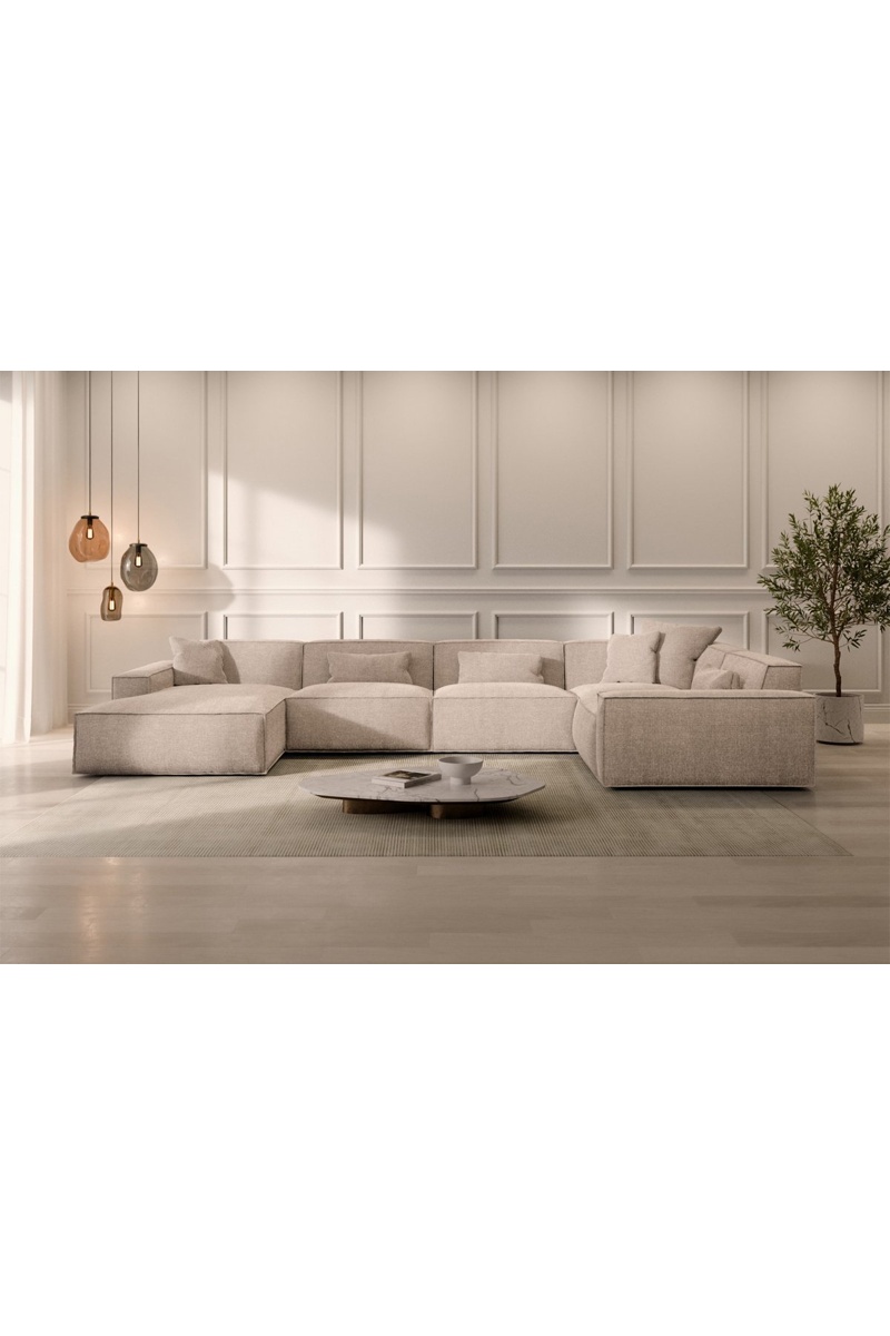 Canapé d'angle droit panoramique Lionel - Beige