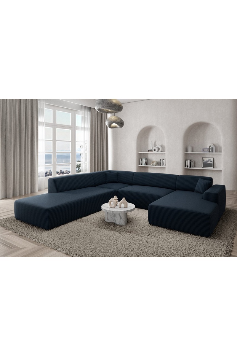 Canapé d'angle gauche panoramique Lenova - Bleu atlantique