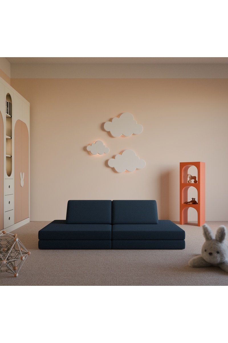 Canapé modulable Simea - Bleu marine - 4 places - Toucher velours côtelé