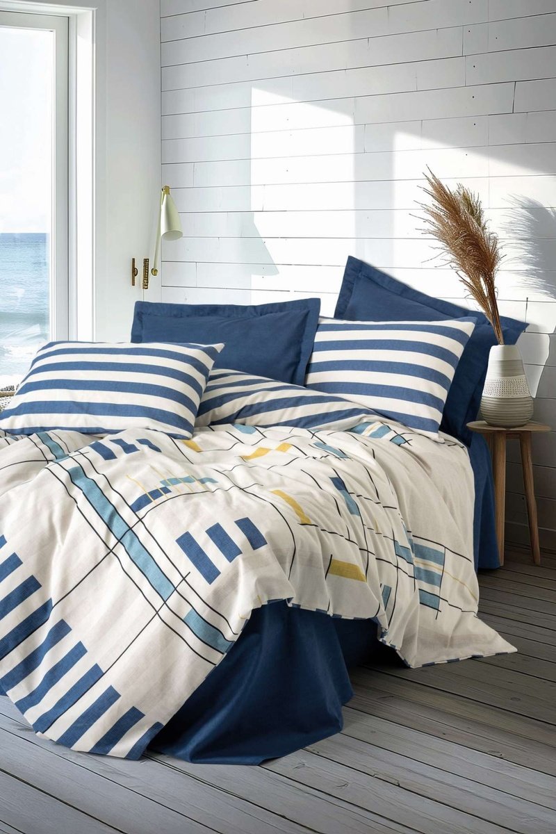 Parure de couette en coton - 57 fils/cm² Lunox - Bleu foncé