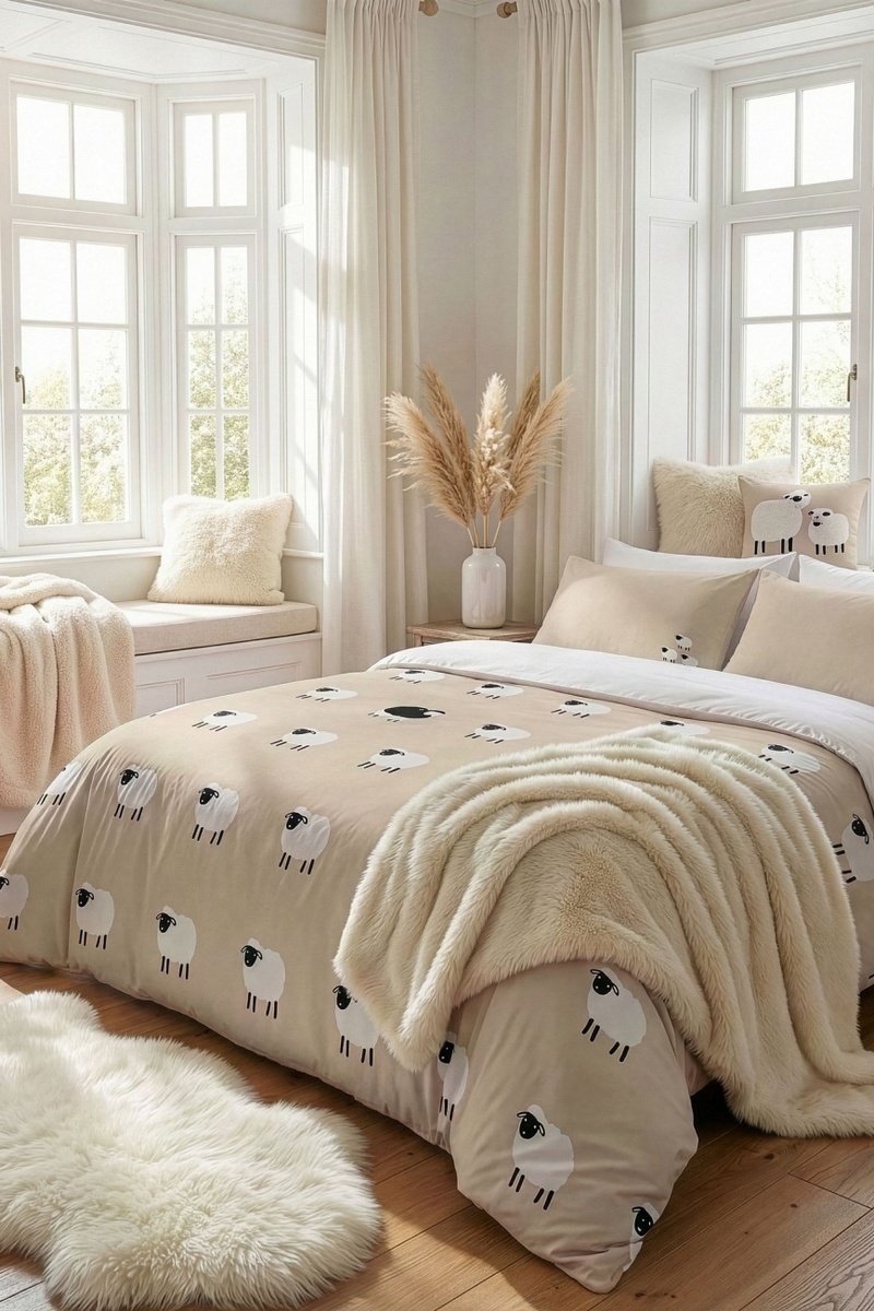 Parure de couette en coton 57 fils/cm² Mouton noir - Ecru