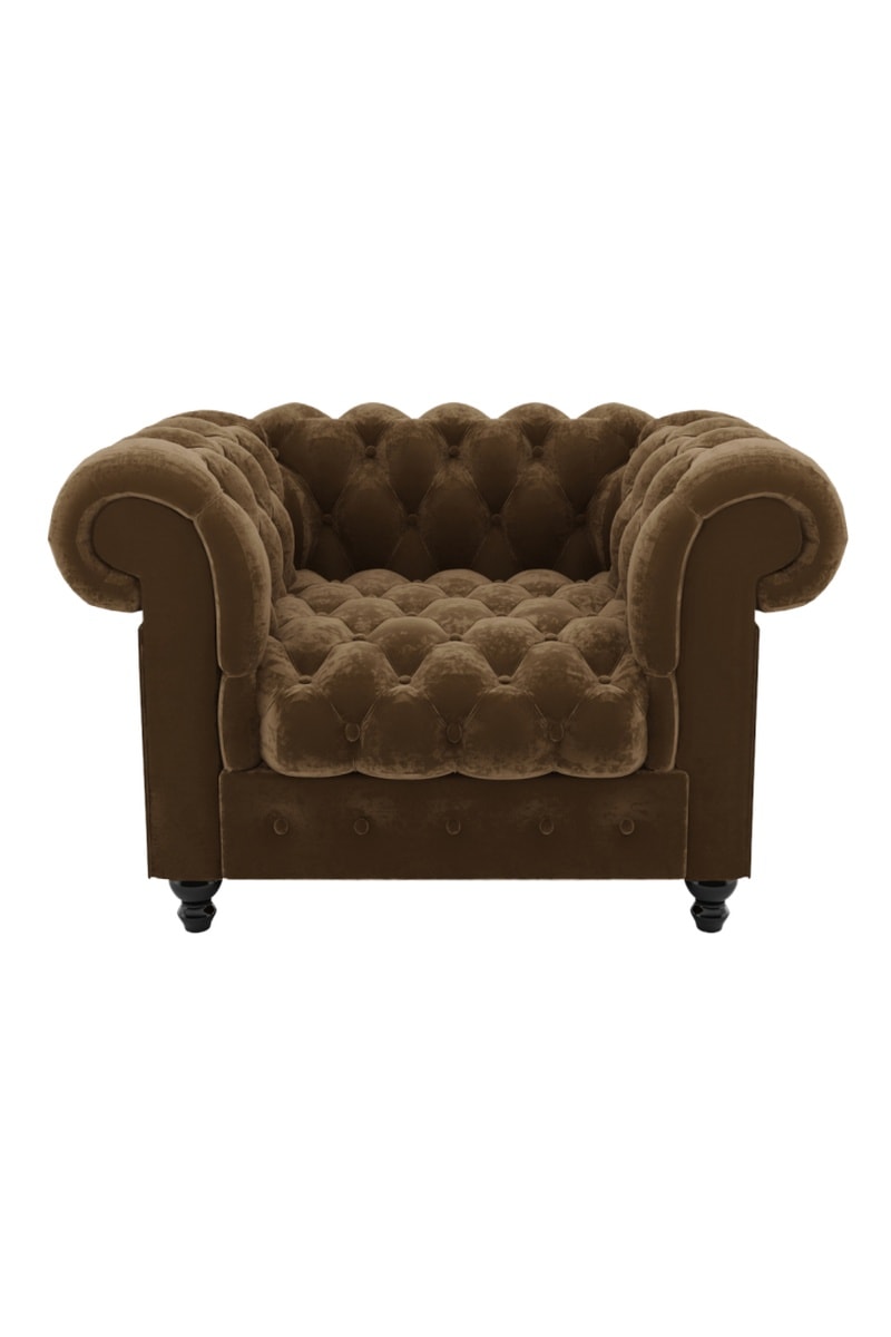 Fauteuil Chesterfield - Marron - En tissu velours