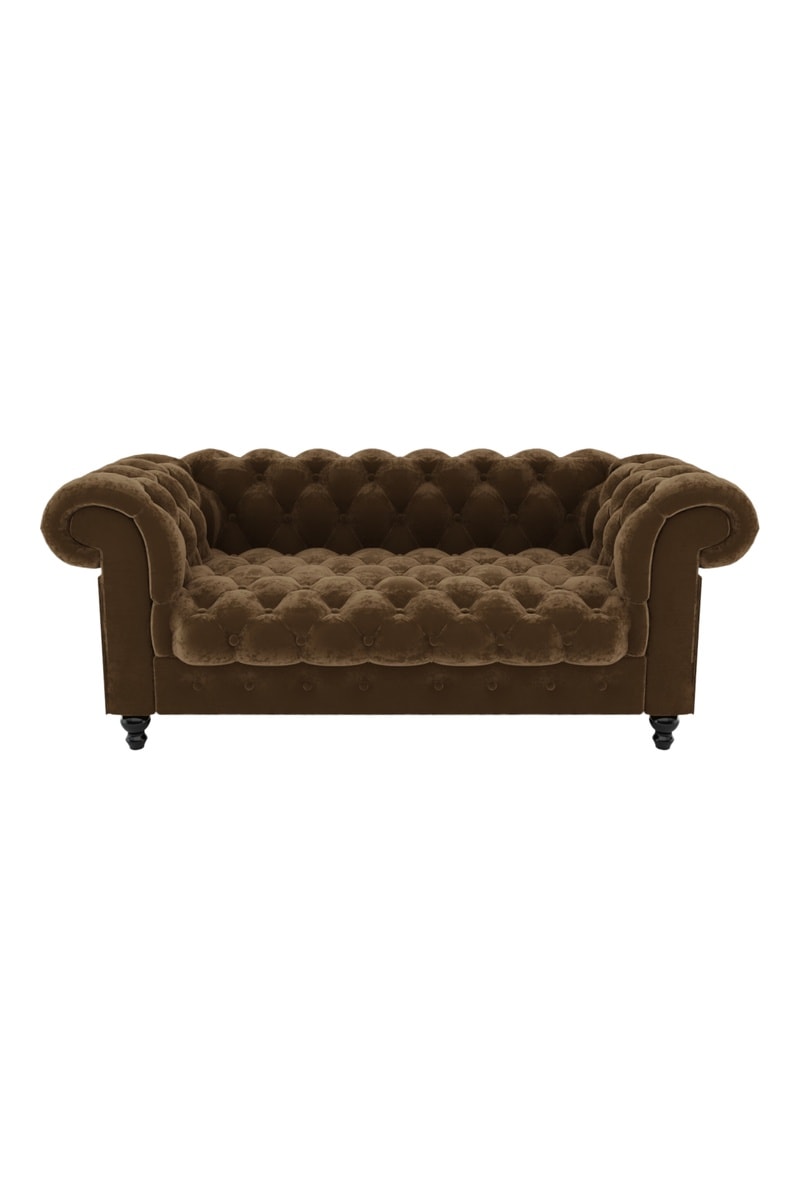 Canapé Chesterfield - Marron - 2 places - En tissu velours