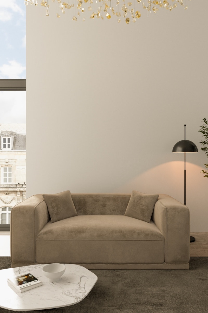 Canapé Duno - Marron - 2 places - En tissu velours