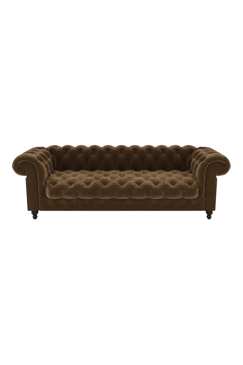 Canapé Chesterfield - Marron - 3 places - En tissu velours