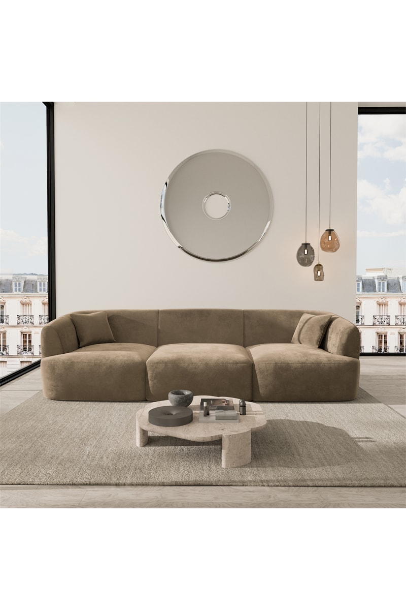 Canapé Ozura - Marron - 3 places - En tissu velours