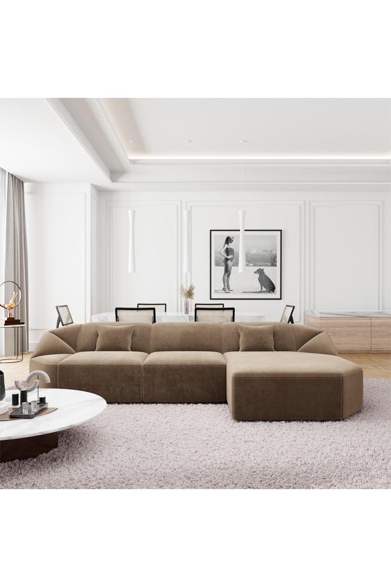 Canapé d'angle droit Laguna - Marron - 5 places - En tissu velours