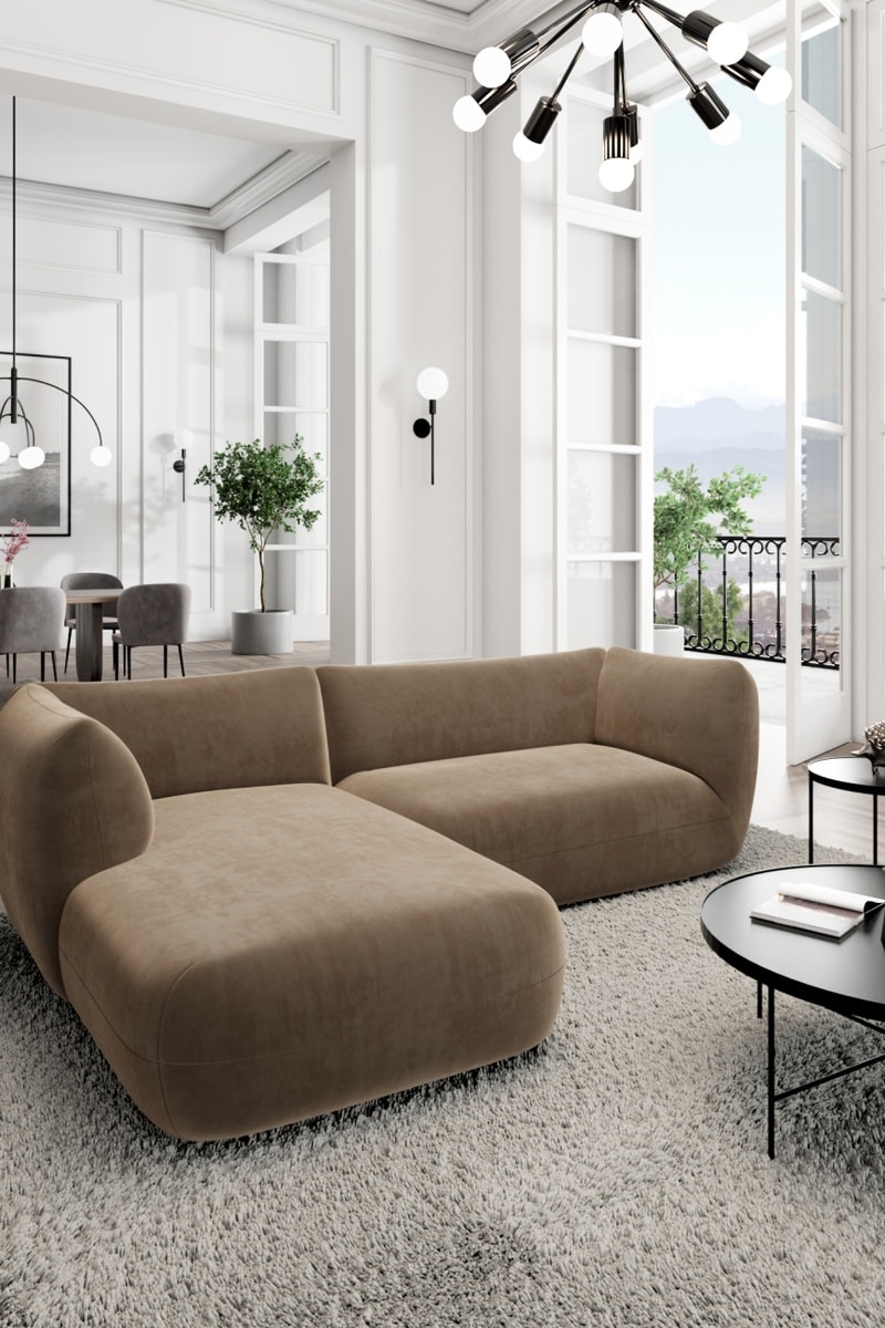 La localisation de l’angle, gauche ou droite, correspond à la vision d’une personne se tenant face au canapé.