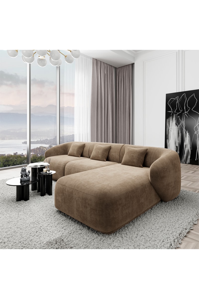 Canapé d'angle droit Maitano - Marron - 5 places - En tissu velours