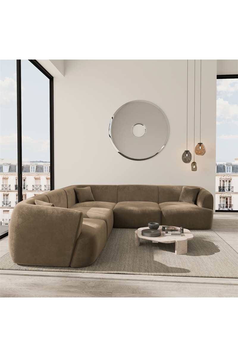 Canapé d'angle réversible Ozura - Marron - 6 places - En tissu velours