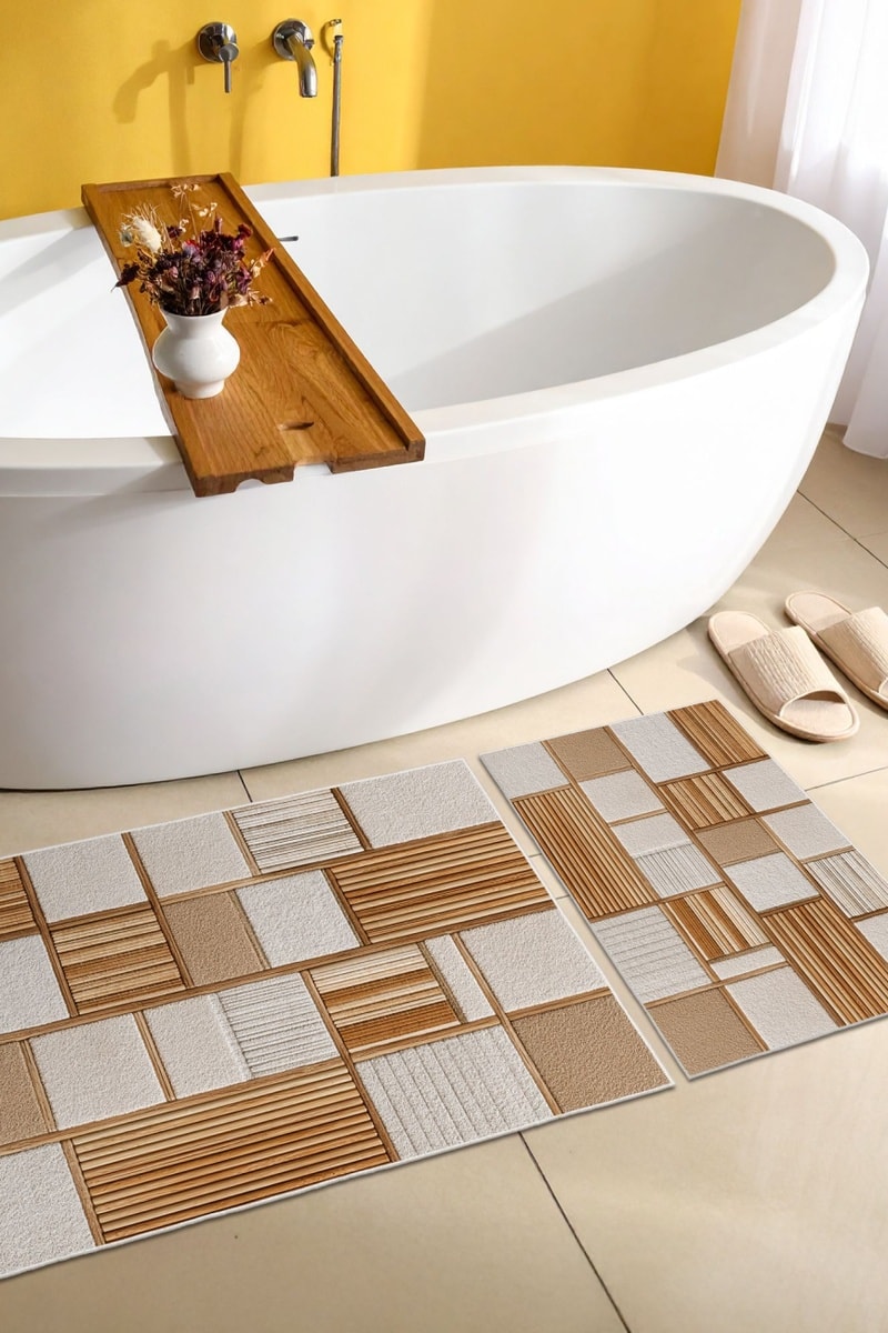 2 tapis de bain - Orange - 50 x 60 cm et 60 x 100 cm