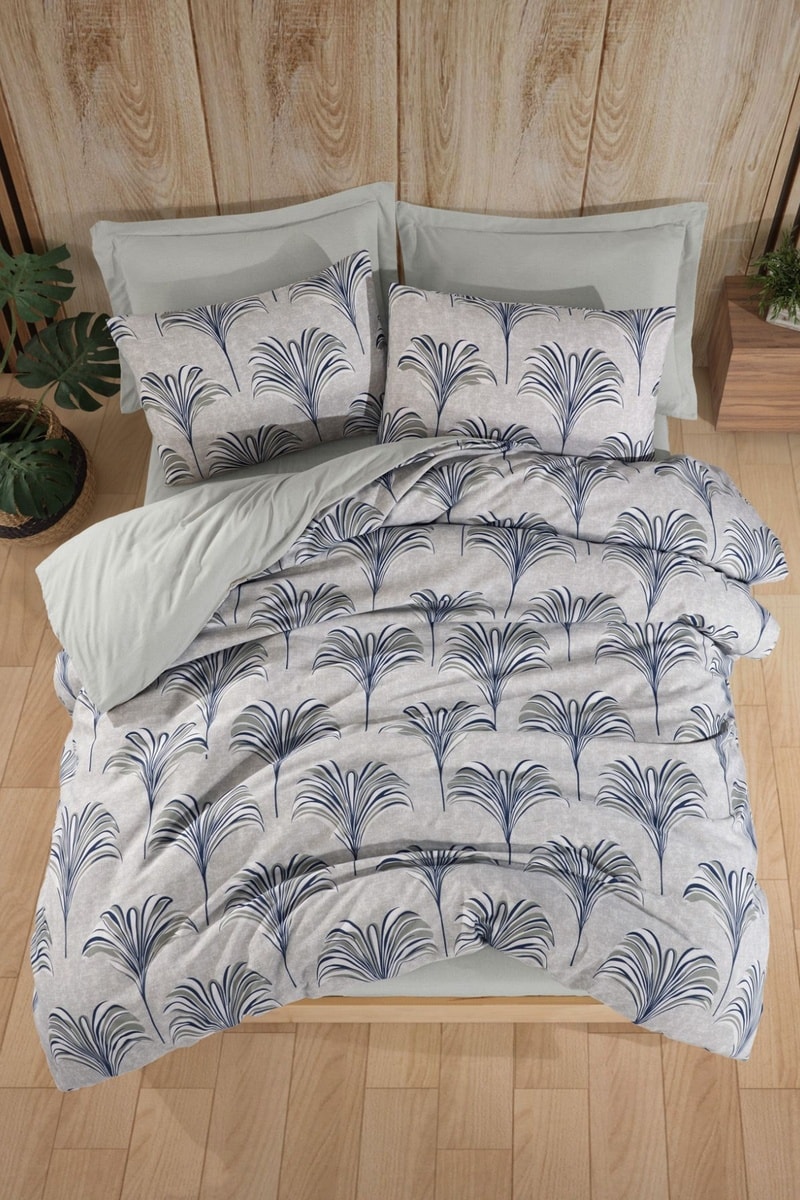 Parure de couette réversible en coton - 47 fils/cm² - Bleu