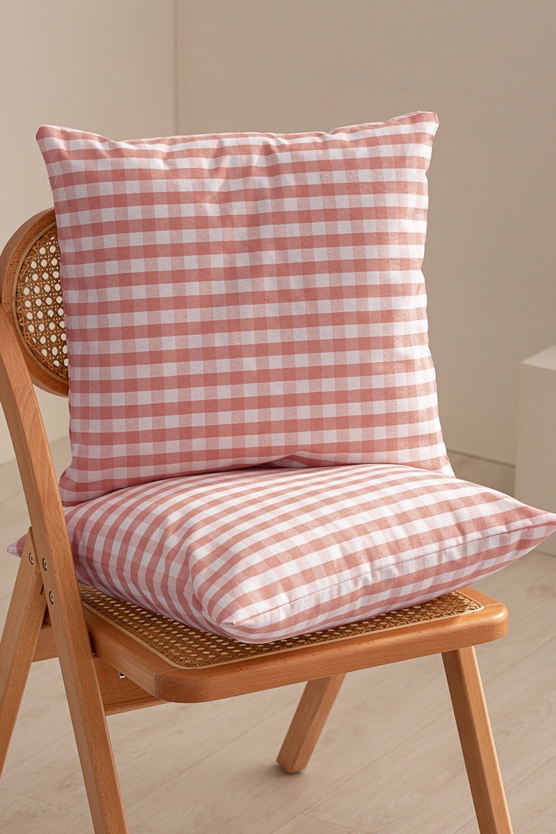 2 housses de coussin Vichy - Saumon - 45 x 45 cm