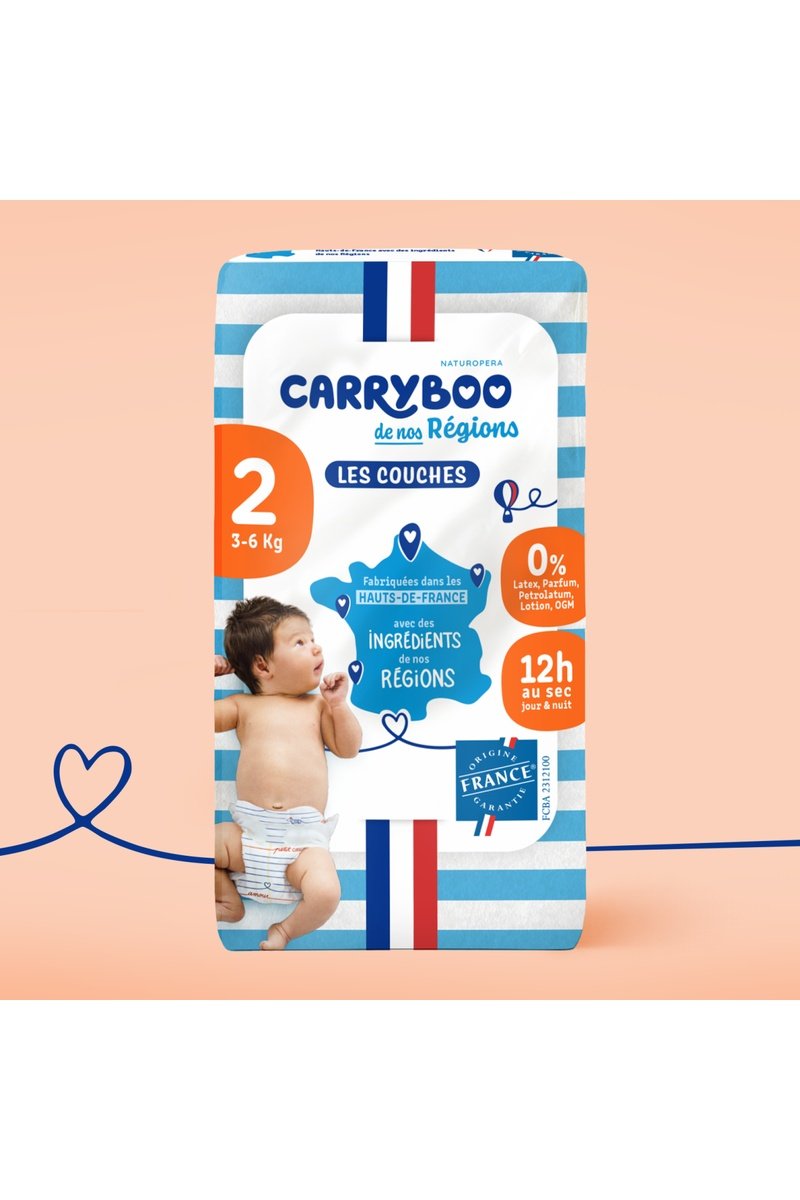 Matière : polypropylène non tissé, cellulose française ecf, microbilles absorbantes, film en polyéthylène, élastiques en élasthanne sans latex, fibres de polyamide, fibres de polyester et colle