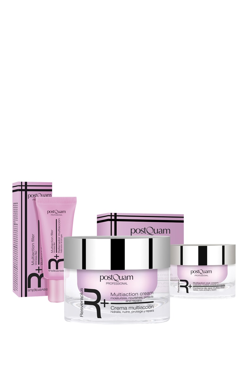 Crème multi-action : AQUA (WATER), CAPRYLIC/CAPRIC TRIGLYCERIDE, GLYCERIN, STEARIC ACID, C15-19 ALKANE, ALOE BARBADENSIS LEAFJUICE, GLYCERYL STEARATE SE, BUTYROSPERMUM PARKII (SHEA) BUTTER, METHYLPROPANEDIOL, CETEARETH-20, SODIUM HYALURONATE, PROPYLENE GLYCOL, HEXAPEPTIDE-10, PSEUDOALTEROMONAS FERMENT EXTRACT, TRIPEPTIDE-10 CITRULLINE, TRIPEPTIDE-1, DIMETHICONE, ROSA MOSCHATA SEED OIL, TEPRENONE, DIPEPTIDE DIAMINOBUTYROYL BENZYLAMIDE DIACETATE, ALLANTOIN, HYDROLYZED SOY PROTEIN, HYDROLYZED WHEAT PROTEIN, LECITHIN, HYDROGENATED POLYDECENE, BUTYLENE GLYCOL, VITIS VINIFERA (GRAPE) SEED EXTRACT, MALTODEXTRIN, SODIUM POLYACRYLATE, TOCOPHEROL, CAPRYLYL GLYCOL, XANTHAN GUM, PHENYLPROPANOL, DISODIUM EDTA, ACRYLATES/C10-30 ALKYL ACRYLATE CROSSPOLYMER, CITRIC ACID, SILICA, CARBOMER, TRIDECETH-6, LAURYL ALCOHOL DIPHOSPHONIC ACID, TRIETHANOLAMINE, LAURIC ACID, PHENOXYETHANOL, POTASSIUM SORBATE, SODIUM BENZOATE, PARFUM (FRAGRANCE)