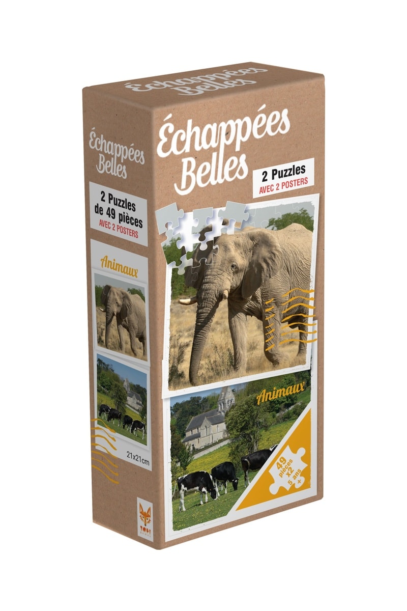 2 puzzles Echappées Belles Animaux - 2 x 49 pièces - Dès 5 ans