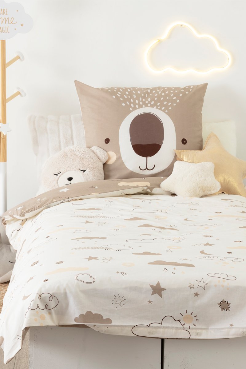 Parure de couette en coton 115 g/m² Ours - Blanc et beige