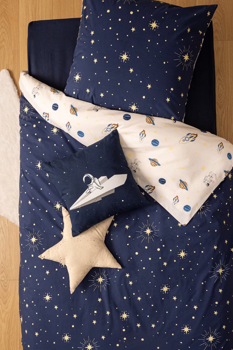 Parure de couette en coton 130 g/m² Espace - Bleu marine