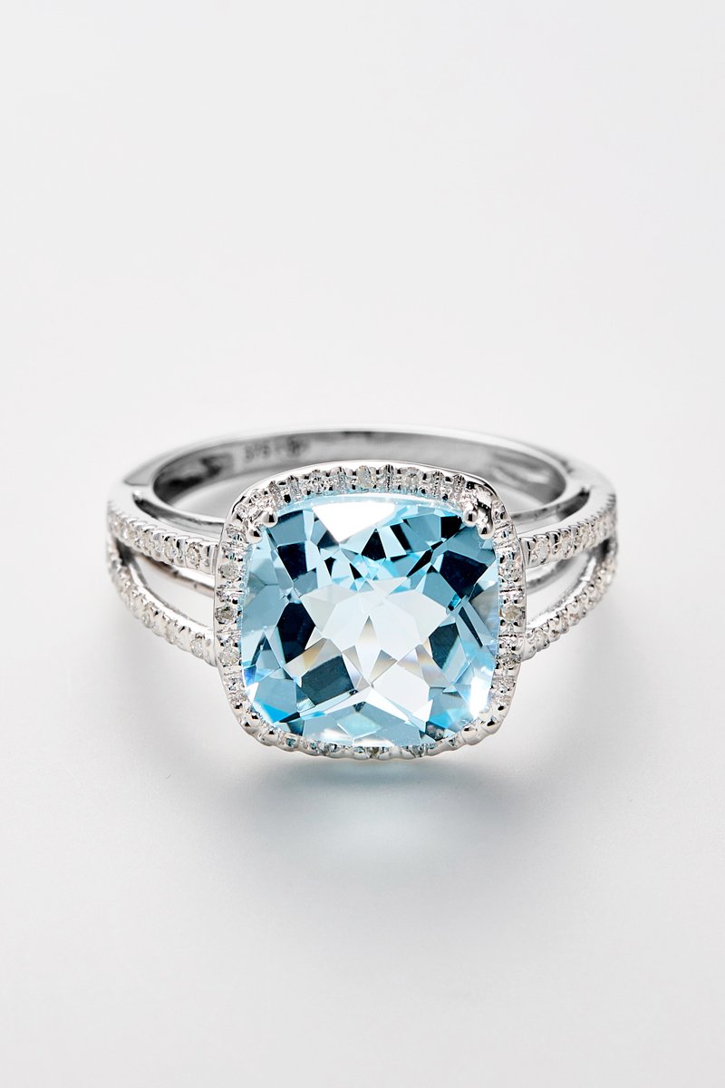 Matière : or blanc 375/1000, topaze 4,5 carats/1 et diamants 0,1 carat/32