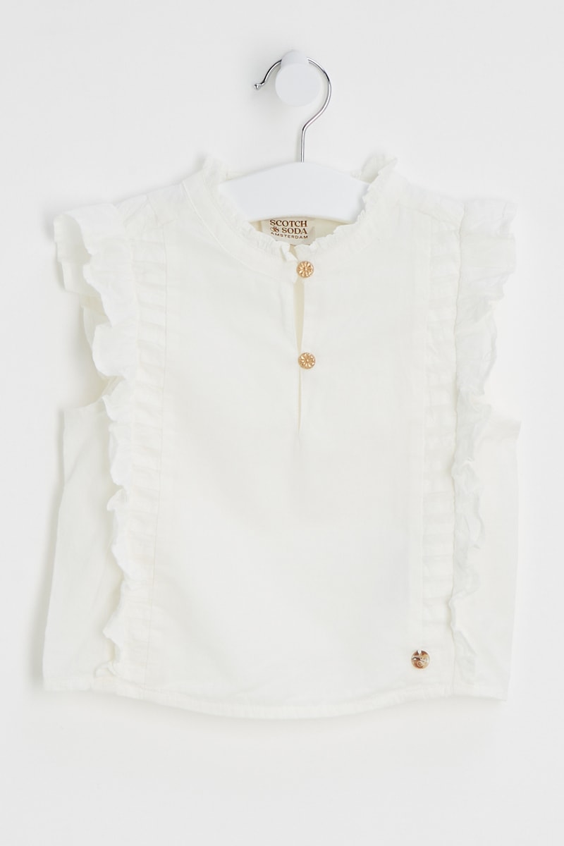 Volants à l'encolure, sur les manches et devant.