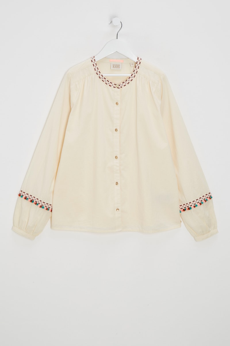 Motifs fantaisie brodés à l'encolure et sur les manches.