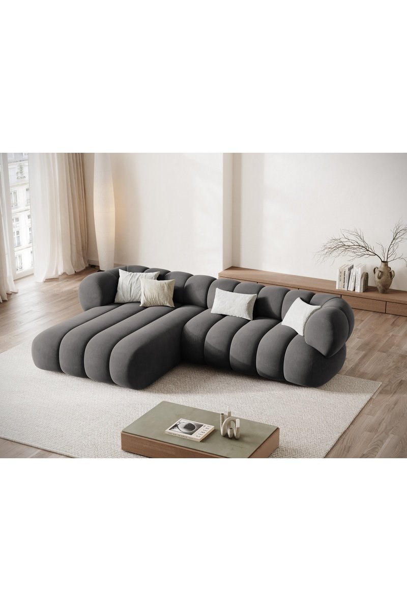 Canapé d’angle gauche Koge - Gris - 5 places - En tissu velours