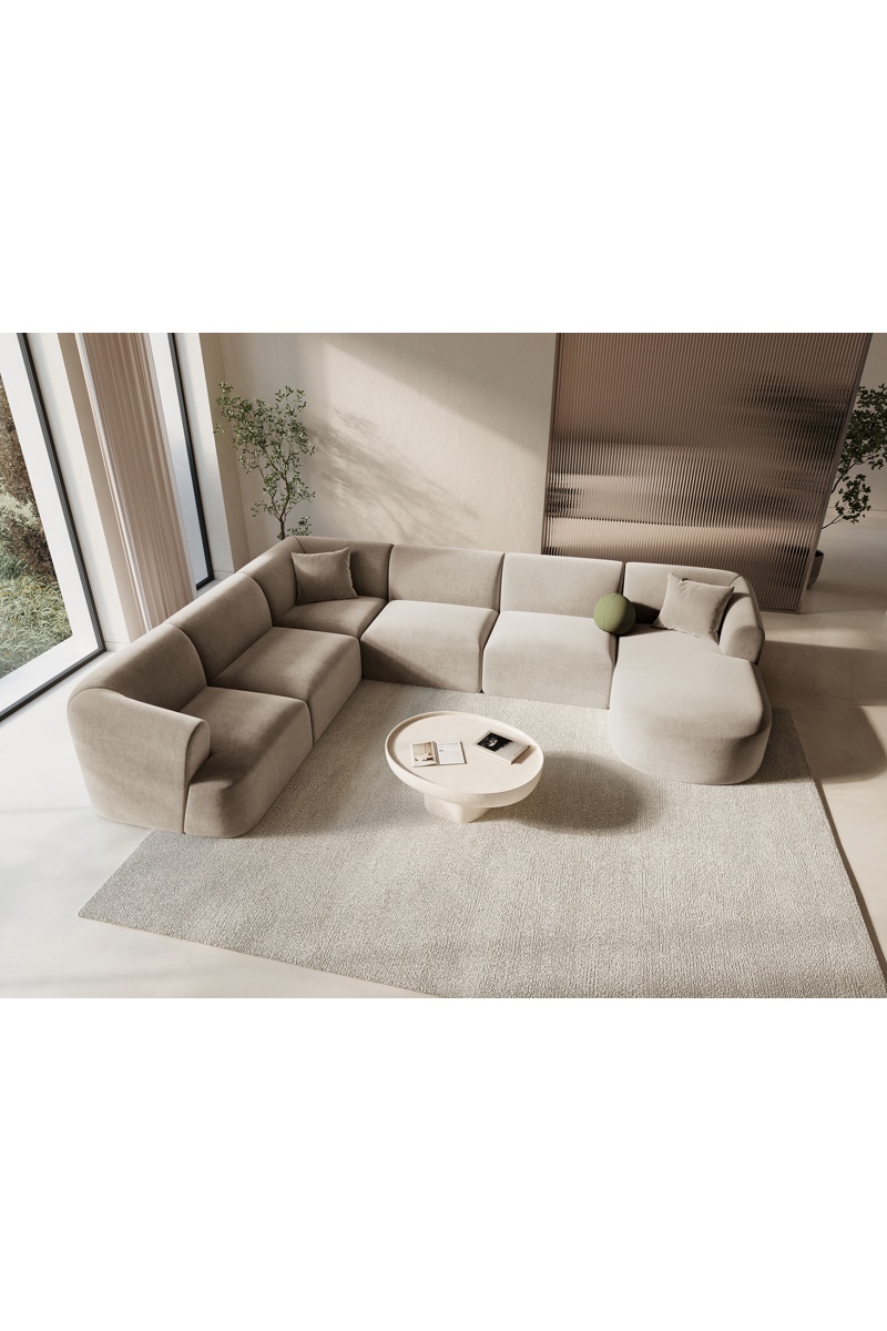 Canapé d’angle droit panoramique modulable Campi - Beige - 7 places - En polyester