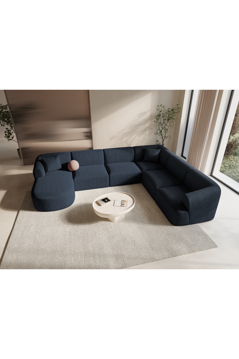 Canapé d’angle droit modulable Campi - Bleu roi - 7 places - Tissu structurel