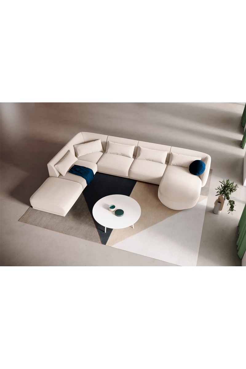 Canapé d'angle gauche panoramique Tulum - Beige - 6 places - En tissu synthétique - Toucher velours
