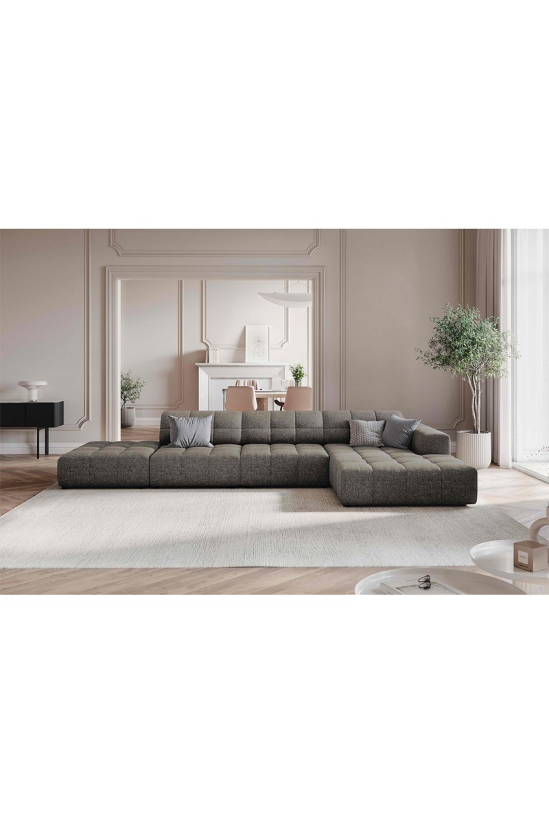 Canapé d'angle droit Chicago - Gris - 5 places - En tissu chenille