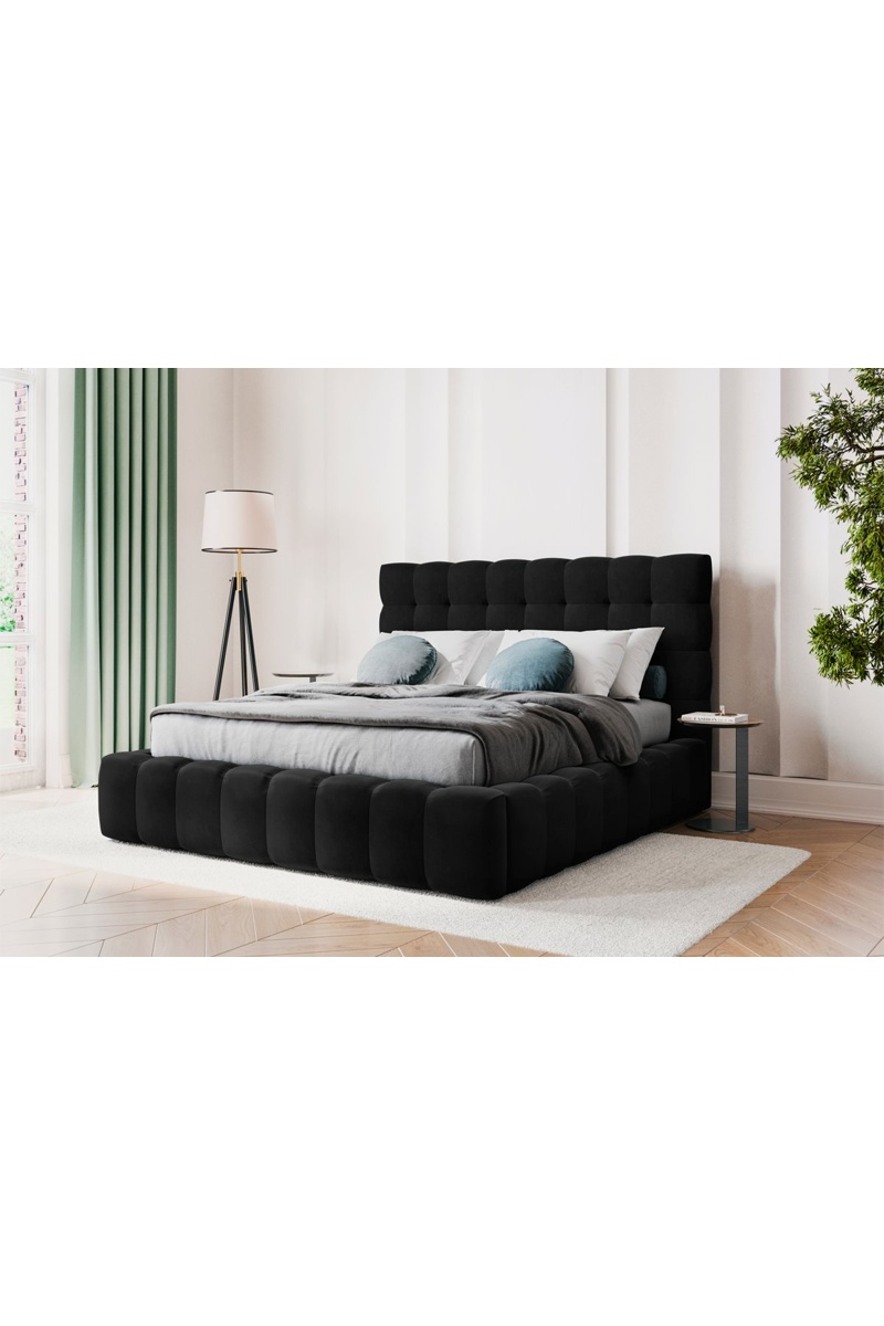Lit-coffre Bali - Noir - Toucher velours